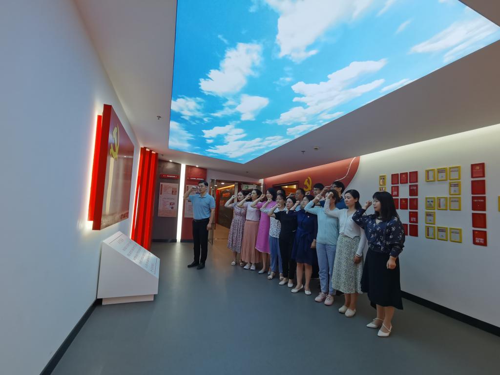 学习结束后,党员教师们齐聚党旗前,公司党委书记杨军作为领誓人,带领全体党员教师一起高举右拳,再次庄严宣誓。“我志愿加入中国共产党……随时准备为党和人民牺牲一切,永不叛党。”铿锵恢宏的誓词,强烈震撼着在场的每一位党员,一字一句,神圣而豪迈,体现了全体党员教工对中国共产党的无限忠诚。