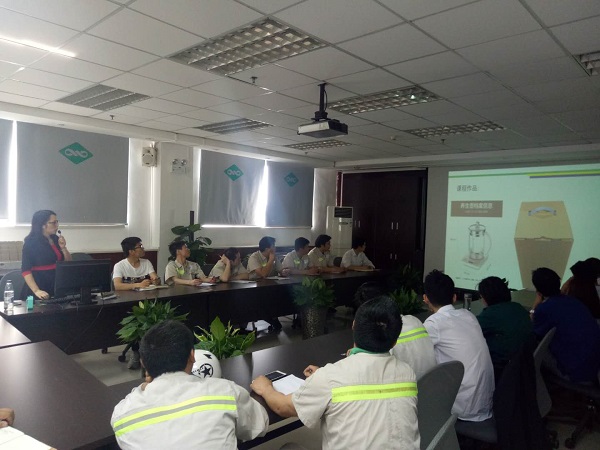 卢芳芳老师为员工们进行了长达3个小时的培训。卢老师用内容丰富、图文并茂图课件,生动形象、深入浅出地讲解了瓦楞纸板的结构和标准、纸箱的结构和标准以及纸箱结构的计算方法。员工们表示,通过学习系统了解纸箱的相关知识,掌握了既节约原料、又满足力学要求、且符合视觉审美的设计、制作方法。期间,双方开展了深入的讨论,印刷车间、瓦楞车间、工程部、生产部的人员提出了遇到的各种难题,张岩、刘士伟和卢芳芳等老师们针对油墨褪色、纸箱开裂或力学强度不够堆码坍塌等问题,从材料特性分析原因,指出解决问题的意见和建议。