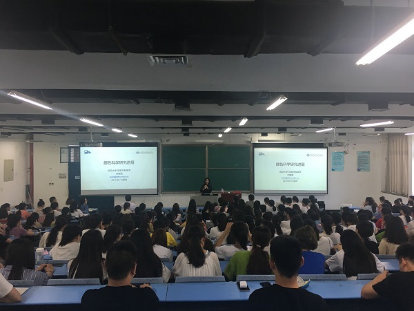 下午,万教授以《颜色科学的研究进展与技术应用》为题,结合前沿科研成果,从颜色形成及视觉感知原理、CIE标准色度学系统的发展历程、现代颜色测量技术的发展和应用、基于标准色卡的颜色表达、颜色匹配建模的科学方法,以及颜色科学理论在颜色工业中的典型应用与实践等方面,详尽、深入讲解了颜色科学研究的最新成果及发展趋势。报告中,万教授平易近人、深入浅出、娓娓道来,尽显大师风采,其讲解通俗易懂、案例丰富、诙谐幽默。现场气氛热烈有序,师生深表受益匪浅。