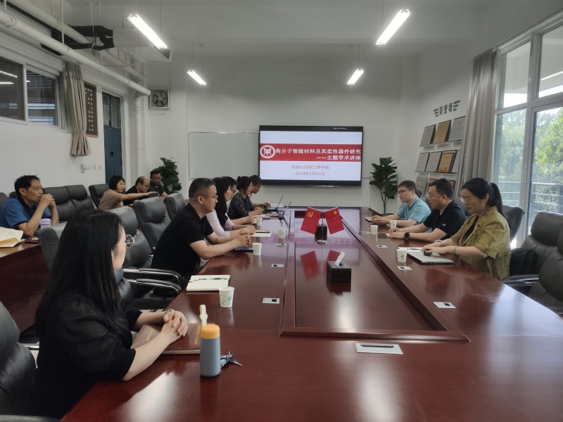 刘旭影教授团队的杨操教授介绍了团队研究方向、团队队伍、科研平台等基本情况,阐述了公司在教育科技人才一体推进、国家战略科技力量、关键核心技术攻坚战等方面的做法与成效,详细汇报了团队研发的高阻隔涂层在生物医药器械领域的应用等产学研方面的宝贵经验。胡晓光教授以“Blatter自由基及其阻变存储性能研究”为题,介绍了有机光电磁材料和光致变色材料,包括半导体、磁性材料、有机晶体管、存储器、光探测器、变色油墨、防伪、光响应/光控催化等方面的研究进展。惠飞研究员以“基于低碳材料的柔性信息存储器件和纳电子技术研究”为题,围绕导电、半导体和介电等柔性电子材料以及印刷、涂布、纺丝等成膜工艺与技术方面进行详细的介绍与分享。