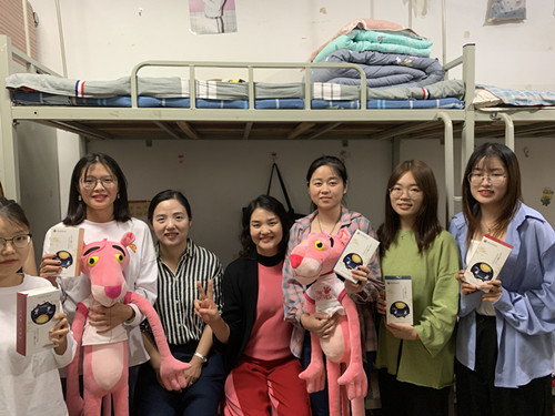 当天中午,副书记祝聪楠、办公室副主任季文君和各班双导师分别深入17、18、19级员工宿舍,为每一位员工发放了月饼。发放过程中,老师们详细询问了同学们平时的学习、生活情况,大家纷纷对老师们的亲切关怀表示了感谢,一边品尝月饼一边畅聊日常,并与老师们亲切合影。