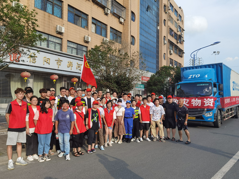 20级包装02班张竣源同学在接到新乡多地救援物资告急消息后,积极响应社区号召,与社区小伙伴一道毫不犹豫地加入到志愿者的行列中,一辆一辆的小轿车,面包车,大货车紧跟而来,他们有的是个人有的是公司团体,或多或少,凸显了信阳人守望相助,古道热肠的人性光辉,也深深的感染了作为小小志愿者的我。连续不断的卸物资、搬物资,从艳阳高照到日落西山,志愿者们个个挥汗如雨,满脸通红也不愿停歇,常常是一瓶矿泉水一口就干完了。就在23号夜晚8时许,两辆装满瓶装水、方便面、发电机、机水泵、编织袋等救援物资的大卡车从107国道宝石桥出发将连夜运抵新乡灾区,满载着信阳人民的牵挂与祝福带向灾区。