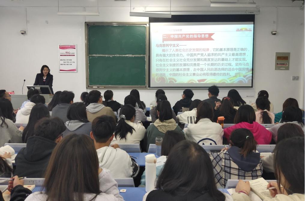 祝聪楠老师按照时间顺序依次为大家介绍了马克思列宁主义、毛泽东思想、邓小平理论、“三个代表”重要思想、科学发展观、习近平新时代中国特色社会主义思想的主要内容,要求同学们正确认识党的思想,做到从思想上入党。同时提高自己的理论水平,端正入党动机,坚定理想信念。