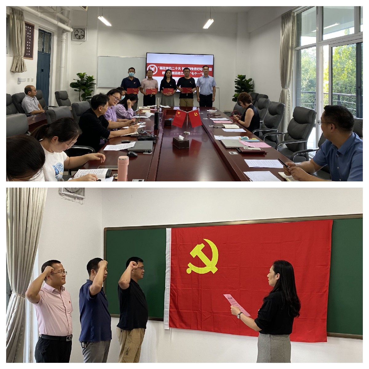 作一次表态发言。结合党史学习教育、“能力作风建设年”等活动,四位党员对照党章党规、立德树人和公司建设等要求,结合自身实际,对下一步如何践行党员标准、如何做合格党员作出庄严承诺。