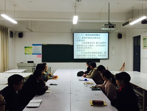 根据公司《2015年党政工作要点》,结合公司党委宣传部《关于开展平安河南建设宣传月活动的通知》要求,在师生积极开展平安河南建设宣传活动的基础上,4月2日下午,我系教师集中观看中国政法大学副董事长马怀德教授的《依法治校与高校办学中的法律责任》讲座。