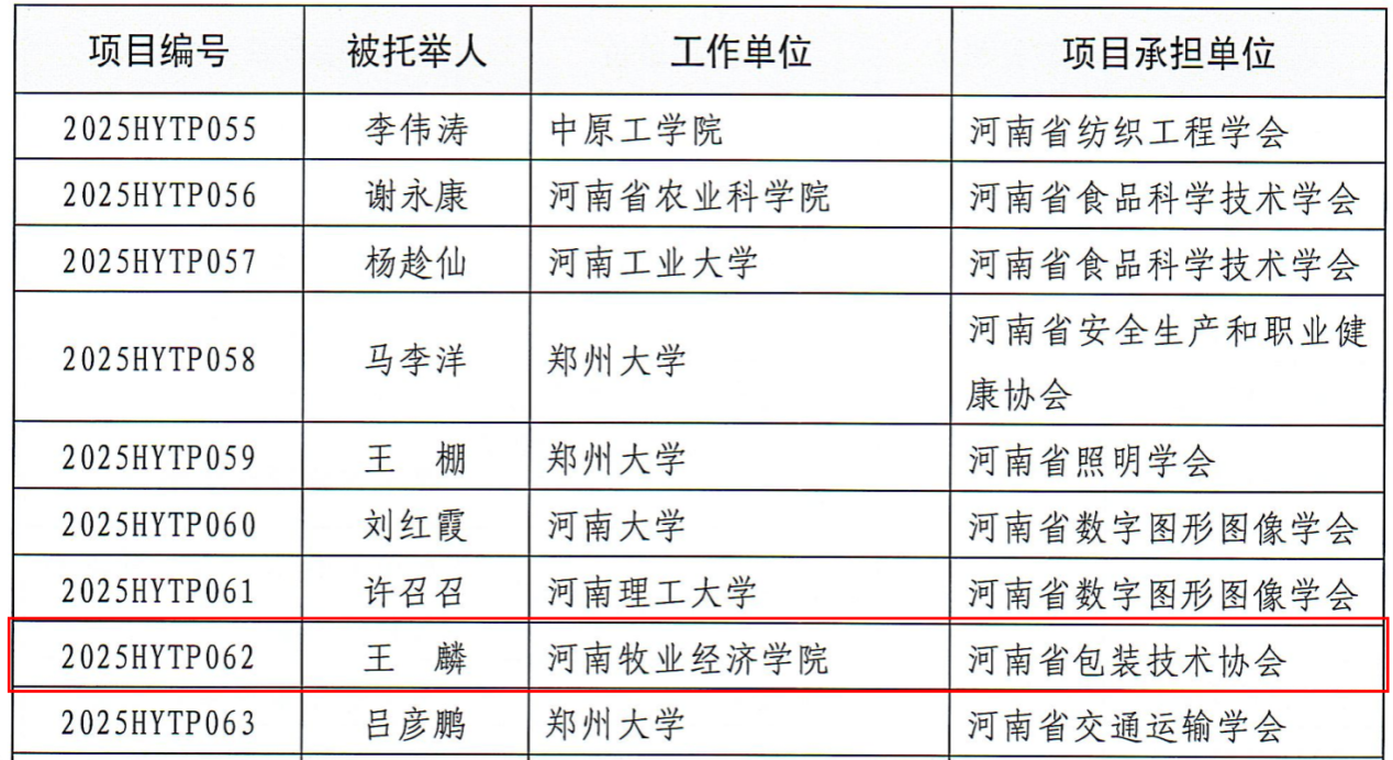 近日,河南省科学技术协会公布了2025年度“科创中原”行动项目立项结果。经专家评审和综合评定,公司王麟博士经河南省包装技术协会申报的青年人才托举工程项目成功获批,标志着公司功能材料团队在青年人才培养和科研创新领域再获新突破!