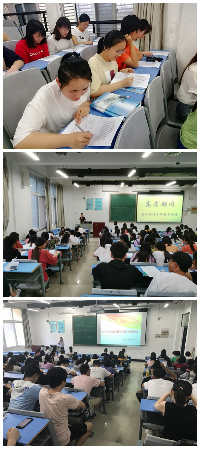 为贯彻落实河南教育厅《河南省教育厅关于切实落实普通高校高考安全责任的通知》教电〔2019〕19号文件精神,确保2019年高考安全、公正、严肃考试纪律,5月30日下午与6月4日中午,公司辅导员段婧老师、李若彬老师、张晨景老师分别在合301、合302、合202教室,组织所有在校生开展关于高考期间加强安全责任的专题班会。