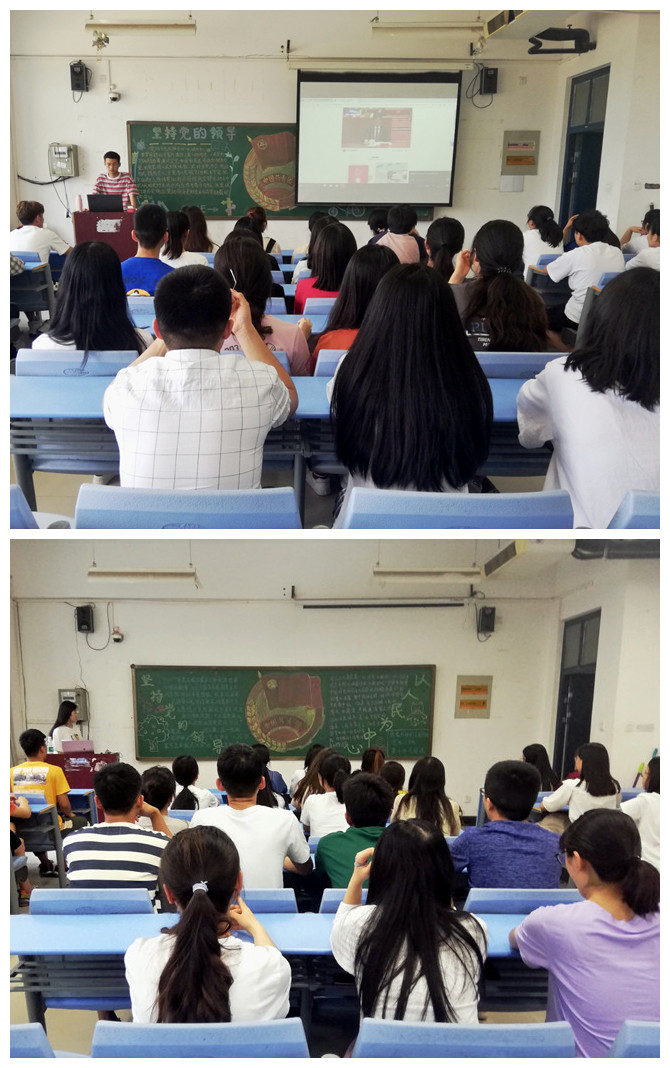 包装工程一班的主讲人以党组织的发展历程为起点,从中国共产党的领导机制讲起,引领同学们正确认识党的核心思想,明确我们的奋斗目标。包装工程二班主讲人,以“坚持党的领导,以人民为中心”为主题,讲述了本次团课的两个核心内容:实现中华民族伟大复兴关键在党,坚持党对一切工作的领导。印刷班主讲人为大家总结自十八大以来,在以习近平同志为核心的党中央坚强领导下,各地区各部门坚持以人民为中心的发展思想,党和国家事业所取得的历史性变革与成就。使得同学们领悟历史性变革是根本性、深层次的,我党至今所取得的成就是全方位、开创性的,让同学们充分认识到,我们的美好生活是党坚持不懈发展的结果。