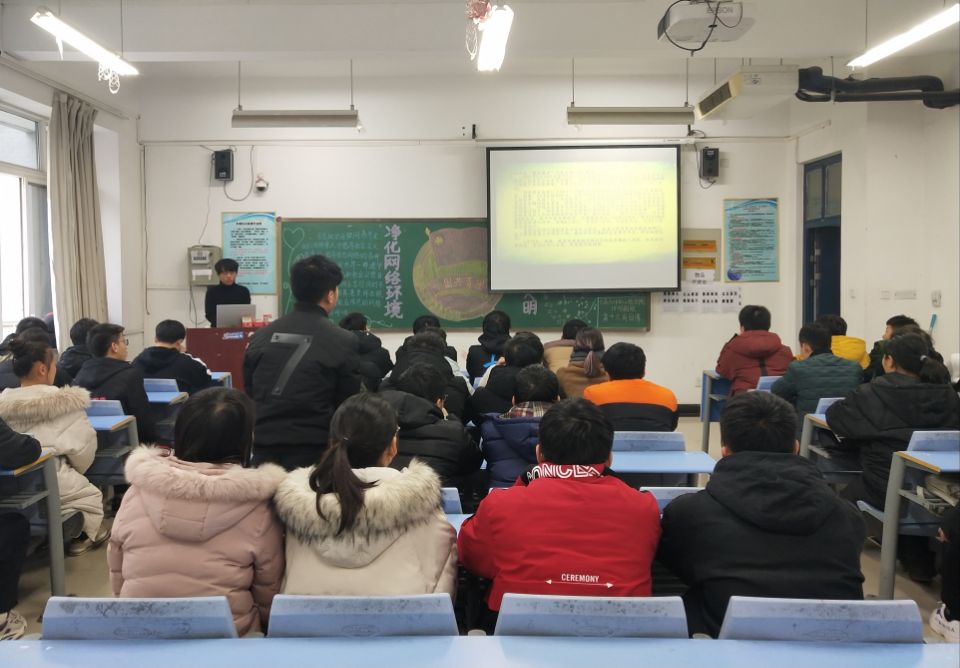 在此次团课活动中,各班团支书精心准备,其中18级包装一班团支书开展了让同学们讲述玩网络游戏的危害的互动活动,使同学们了解合理安排自己的时间重要性,鼓励同学们努力学好专业课知识,将重心放到学业上。18级包装二班团支书则通过视频让同学们了解到我们老员工是中国未来文化使命的承担者,肩负着国家文化安全的重要责任,因而净化网络环境、创建网络文明是当代老员工义不容辞的责任。18级印刷班团支书则给大家讲述了几个关于不正当使用网络危害当代老员工的案例,提醒同学们一定要正确认识网络的本质,提高辨别事物是非的能力,合理利用自己的时间。
