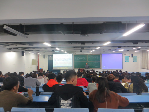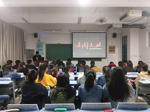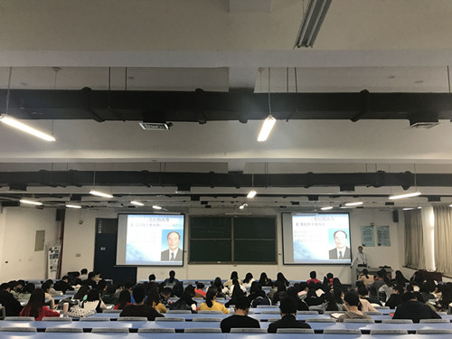 张书记由十九大会议上新增的党章内容说起,给同学们介绍了中国共产党现阶段的指导思想,即:中国共产党以马克思列宁主义、毛泽东思想、邓小平理论和“三个代表”的重要思想作为自己的行动指南。紧接着,张瑞春老师结合PPT内容,给同学们概括介绍了党的指导思想行程过程的七大阶段,让同学们了解到中国革命的发展和党的几次重大会议所修订的党章内容。而后,为了加深同学们对这些指导思想的理解,张瑞春老师又分别详细讲解了这几个思想理论的组成部分和发展过程,内容涉及到相关学科,让同学们对党的指导思想有了更清晰的理解。