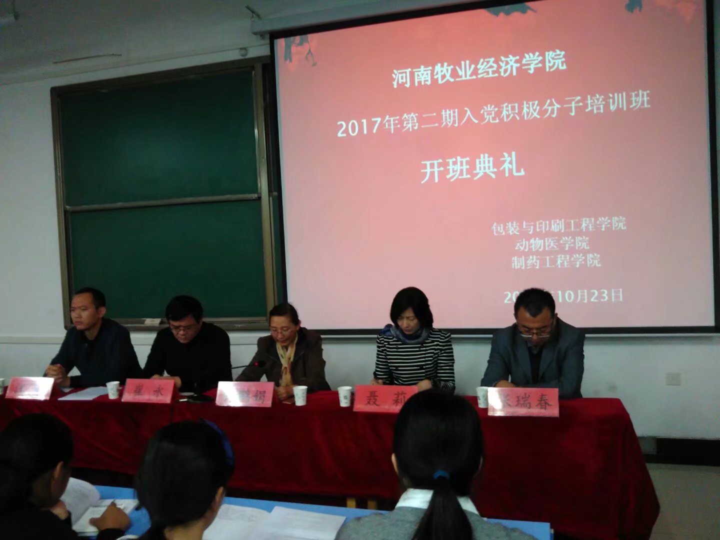 10月23日由英国365集团、制药工程公司、动物医公司党总支联合举办的2017年第二期入党积极分子培训班在1号教学楼合501进行党课开班典礼,公司党总支书记崔永、副书记聂莉、制药工程公司党总支书记杜鹏娟、动物医公司党总支副书记张瑞峰以及三个院系的团总支书记、辅导员和全体学员出席了开班典礼。制药工程公司党总支副书记汪洋主持典礼。