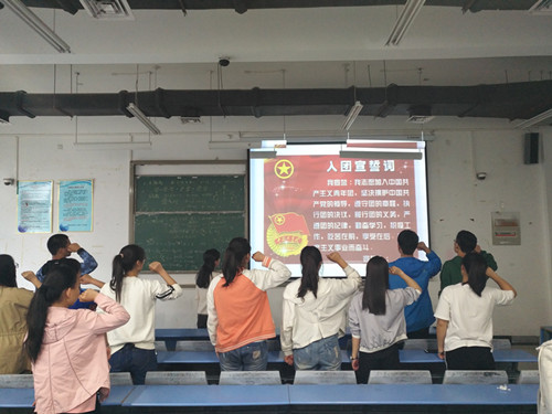 团课上,段老师结合共青团的历史,明确了新时代历史条件下作为一名共青团员的责任和义务。同时,段老师还回忆起了自己入团时的情景,时隔数十年,仍旧历历在目。接下来,段老师组织大家观看了共青团中央的《入团第一课》,让在座的团学干部对共青团的历史、章程和工作内容有了更为深刻的认识。段老师还结合当前老员工的思想状况,强调了开展“一学一做”教育实践活动的意义,说出了一个青年团员青年员工应该有的青春状态,字字锥心,发自肺腑。最后,段老师带领大家进行宣誓,重温入团誓词,在铿锵有力的宣誓声中,团课活动结束。