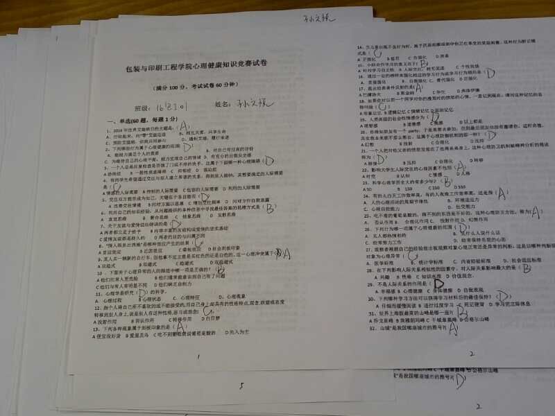 此次比赛以笔试的形式进行,各班心理委员、寝室长和2016级各班踊跃报名参赛的选手共50余名同学参加了此次的现场比赛答题。题目包括单选和多选、判断、填空、简答几种题型,考试中考场纪律良好,同学们认真答题,考试进行顺利。