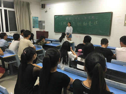 本着对自己助理班主任那份崇高的敬佩,为了在老员工活中更好的锻炼自己,包印系大二的班干部以及员工会的成员都积极报名参加了本次助理班主任的竞选。据了解,本次助班竞选共计二十八余人报名参加,在竞选演讲中,许多同学都提到了当自己还是一个懵懂新生的时候,成熟、稳重、热情而又负责的助理班主任给予自己的莫大鼓励与帮助,助理班主任那种无私奉献的精神对自己深渊的影响更加坚定了自己成为一名助理班主任的决心。
