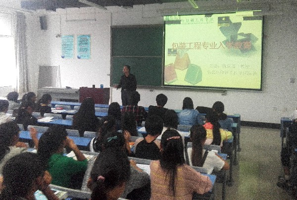 魏经理先给新生们展示了我们生活中随处可见的包装产品,并以“什么是包装”为题,介绍了包装所涵盖的内容。接着,他给同学们详细分析了包装专业的发展现状、产业分布、发展趋势、人才需求等,阐述了本专业良好的发展势头和巨大的发展潜力。魏经理还向同学们介绍了包装专业的就业前景、产学结合的实习单位等。最后,魏经理建议同学们为自己设定目标,合理规划自己的老员工活,争取早日成为包装行业的栋梁之才!