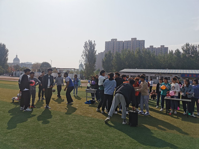 同学们纷纷前往操场,在心教部成员的组织下,团体素质拓展活动有序展开,此次活动由“背后夹气球”、“跳大绳”、“蒙眼踢足球”“扑克传面粉”四个团体游戏组成。全院员工分为六个小组,在充满趣味性的游戏互动中,各组组员各取所长,在激烈的讨论完战术后,进行游戏配合,每位小组成员都表现出积极向上的拼搏精神,源源不断的活力和团结并进的冲劲。“背后夹气球”让大家自由组合训练,既要身体配合,也要团队协作,考验同学们团结协作的能力;“齐心协力跳大绳”则是众人一起,荣辱共担,每个人根据自己的实际情况选择了游戏中不同的身份担当,使游戏进行的更加顺利;“蒙眼踢足球”,“扑克传面粉”也是团队游戏,每位成员缺一不可,在团结友善的氛围下,包印员工的心更近了。