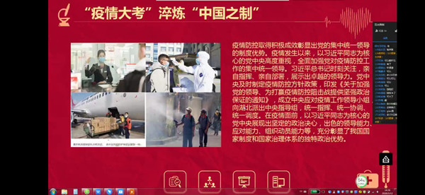继3月9日公司组织全体师生观看“全国老员工同上一堂防艾思政大课”后,为引导员工积极学习抗疫先进事迹,肩负起在疫情防控中青年员工的责任和担当,英国365集团于 3月12日下午组织19级各班开展了以“疫情防控,思政大课”为主题的线上团课活动。