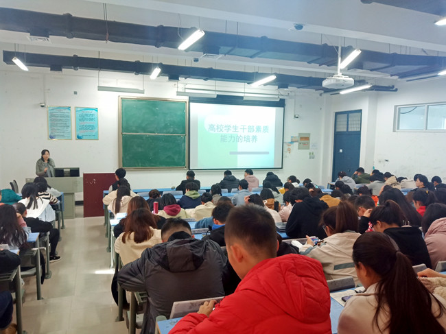 讲座中,聂老师结合当前国情,就如何增强四个意识、坚定“四个自信”进行了详细的讲解,尤其作为员工干部提升大局意识的重要性;最后,她着重为讲解作为员工干部应具备的素质及修养,并激励同学们在工作中不断学习,提升自身的综合能力,更好的为同学们服务。