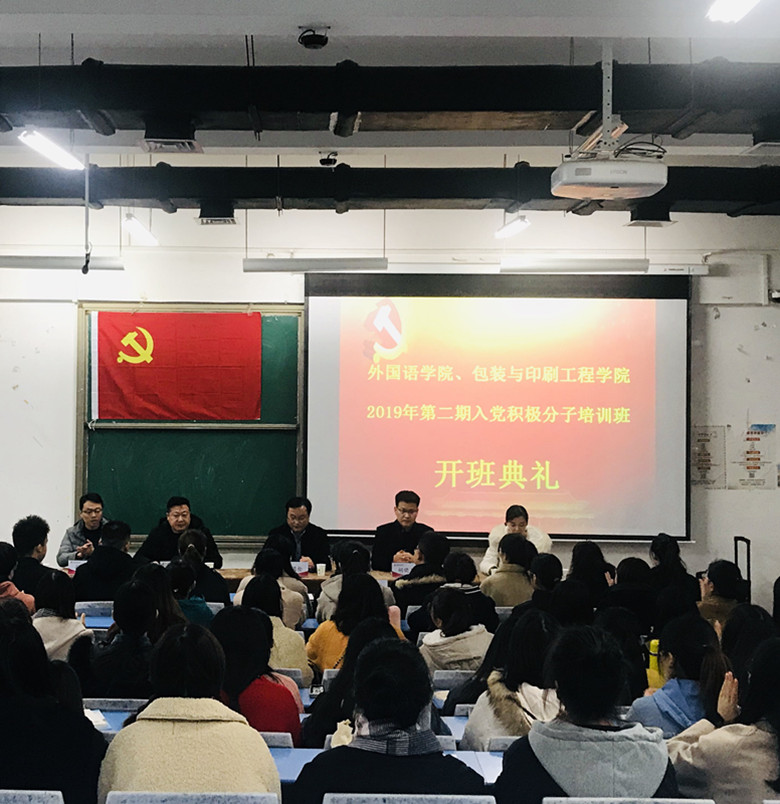 为进一步加强对入党积极分子的教育和培养,提高入党积极分子的政治思想素质和理论修养。11月26日,公司与外国语公司于合204教室联合举办2019年第二期入党积极分子开班典礼。外国语公司党委书记王明栓、包装印刷工程公司党委书记胡晓波、外国语公司正处级组织员潘胜寒及两个公司学工队伍老师出席典礼,两个公司近百名入党积极分子参会,开班典礼由段婧老师主持。