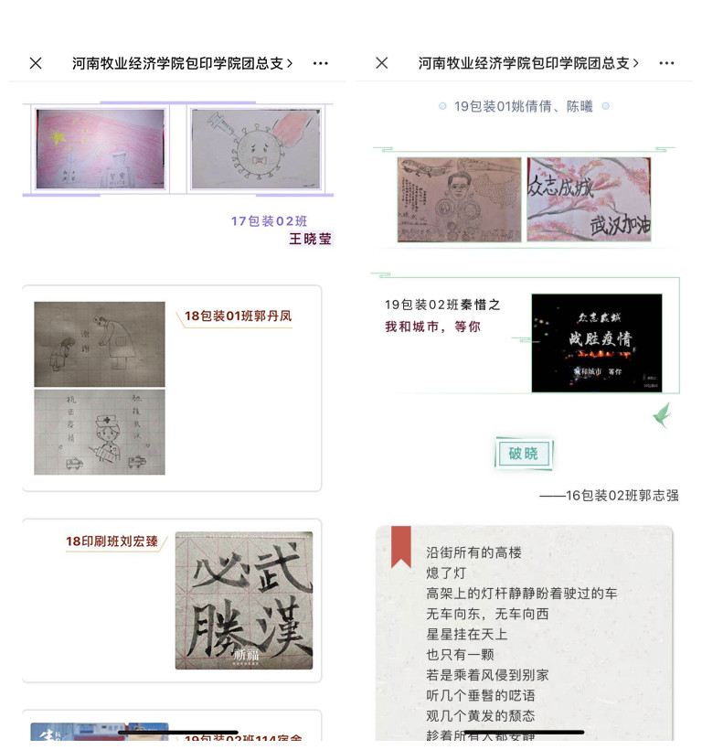 在此次作品征集活动中,各团支部广泛动员,各团员青年积极参与,经过初选后共征集到30余份集体和个人作品,作品涵盖了主题网文、书法作品、手绘、海报、短视频等多种形式。征集的作品内容丰富,形式新颖,展现了公司青年员工面对疫情积极应对的乐观态度和抗击疫情必胜的信心。同时,为了扩大宣传,公司对征集到的作品进行了整理汇编,遴选了部分优秀作品在公司微信公众号持续推送。