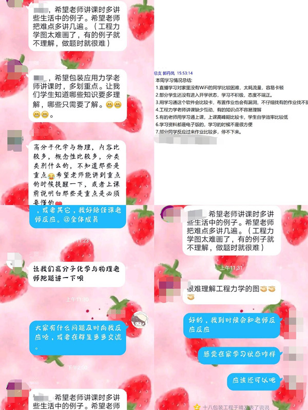 为学习、贯彻郑邦山厅长在全省新冠肺炎疫情防控工作教育系统专题新闻发布会上的讲话精神,了解网络教学的学习效果,加强教师与员工间的交流,按照公司《关于组织开展员工线上教育活动的通知》要求,2月23日,公司组织各班以钉钉视频会议、钉钉直播、图文交流等多种形式开展了线上的学习交流班会,辅导员段婧、张晨景和专业成长导师王保营、王麟老师以及高数任课教师林大志也都深入班级,与同学们进行了线上的分享与交流。