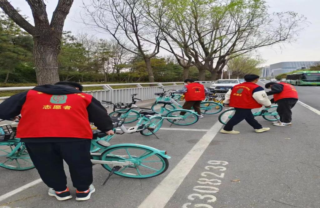 活动期间,志愿者们统一身穿红马甲,手持指挥旗,耐心地引导过往行人和非机动车辆遵守交通规则;礼貌地劝导行人不闯红灯、不随意横穿马路;热情地帮助老人、儿童等特殊群体过马路,确保交通畅通有序。在开展疏导交通活动的同时,志愿者们把周边无序停放的共享单车,按照“规范停放,摆放有序,朝向一致”的原则进行整理摆放,有效解决原先车辆乱停乱放和占用道路的问题。