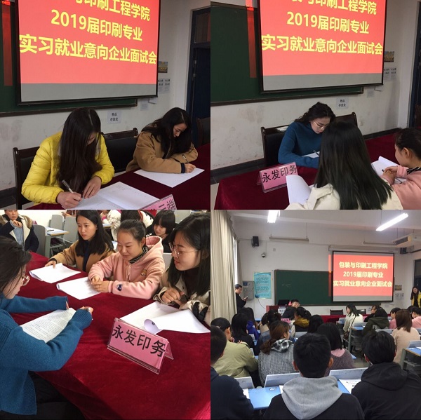 河南飞龙彩印、河南云端包装、广东永发印务、北京利丰雅高、杭州华人包装等公司,对员工进行了面试;同学们介绍了自身的专业特长、兴趣爱好、职业方向与需求,与企业进行了深度交流。企业方对同学们的表现给与较高评价,现场签订了实习就业意向协议书,并表示尽快安排合适的岗位,供同学们实习锻炼。整个面试工作紧凑高效、有条不紊。
