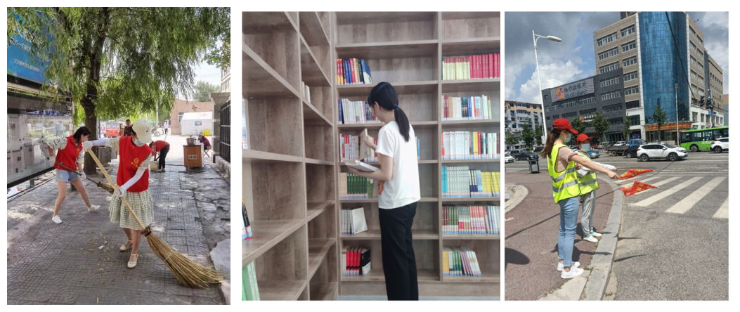 除此之外,公司志愿者还投身于便民利民服务,助环卫,减负担;扎身于图书馆,为书生正气;整盲道,行交通,为人们出行保驾护航;维秩序,共享单车摆放整齐,让城市更整洁;强宣传,向社区人员宣传讲解疫情期间为我国人民作出巨大贡献的医护人员和坚守在各行各业工作岗位上的人士们的典型光荣事迹,提升民族自豪感。