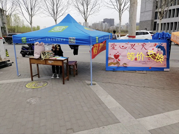 公司志愿者于3月20号到22号(早上8: 00-下午7:00)在一餐门口启动“爱心漂流,等价互换”活动。此次活动,以征集同学们的闲置物品,或以闲置物品来换取自己所需要的物品为主要内容。