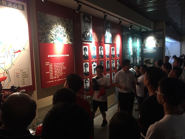 2018年7月2日上午,暑期社会实践小分队师生一行瞻仰了孟良崮纪念馆。纪念馆前面是陈毅元帅、粟裕将军侍马而立的大型花岗石塑雕,红色花岗岩上镌刻着陈毅元帅的《孟良崮战役》长诗,两位将帅雕像栩栩如生,再现了当年作为孟良崮战役主要指挥者的光辉形象。