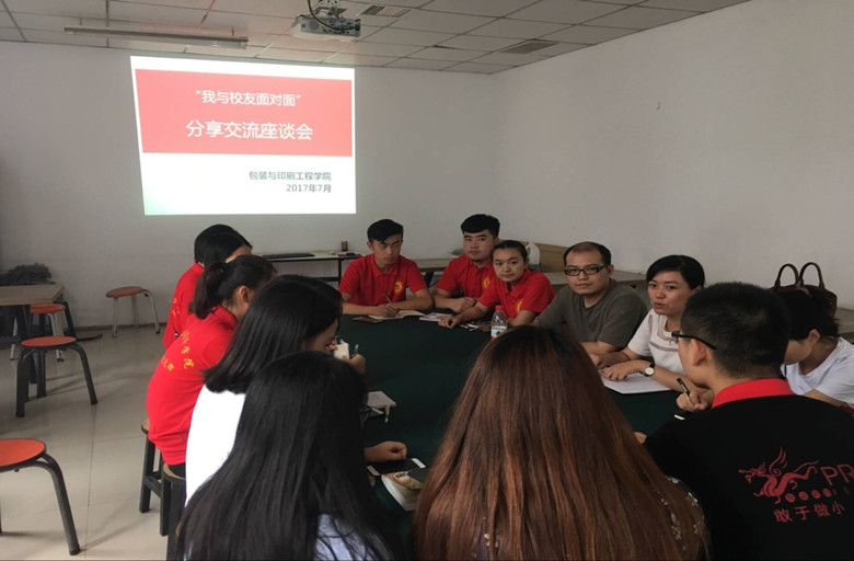 在交流会上,在飞龙工作的这些优秀员工重拾旧日温情,回顾毕业后的就业经历,分享自己的就业故事。他们中,既有生产部经理也有成长迅速的设计师和技术人员,他们通过不同的经历分享,帮助队员们找准未来的就业方向,树立正确的就业观。其中,毕业于2011年的魏星分享了他丰富的就业经历,凭借自己的努力,用6年的时间从最初的普通员工晋升到现在的企业负责人。他回忆刚毕业时到车间开印刷机时遇到很多困难,在公司学习的理论知识很难和实际联系起来,当时不怕吃苦,不断向车间师傅请教问题。他告诫大家,无论做什么都要有一颗积极的心,敢于接受困难。刚刚毕业的单鹏则跟跟大家分享了他从零起步到成长为PVC卡网络销售项目部负责人的全过程。面对销售初期没有人脉、不知道如何与客户沟通,以及从未接触过的软件,他并没有选择退缩,而是与领导积极沟通,向老员工学习,独当一面、快速成长为部门负责人,并让自己的业绩获得了很大的提升。刘莉洁和李科慧则向大家分享了成长为优秀设计师的点滴。她们提到,工作和公司学习是不同的,工作中会接触许多新知识和新软件,这都需要我们自己去钻研和学习。尤其是在设计方面要举一反三,掌握技巧是非常重要的。分享完自身宝贵的成长经历后,实践小分队里的成员们也有针对性的进行了提问,公司的优秀员工们也都从不同的方面给出了解答。交流会结束后,两位指导老师和同学们对公司优秀员工毫无保留的分享表示了感谢,并诚挚邀请公司的优秀员工能在公司建校60周年之际回母校一同庆贺。
