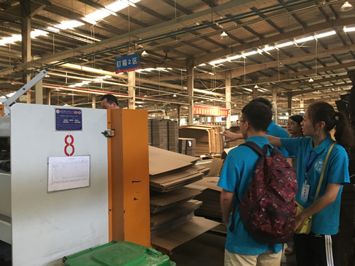 2017年7月3日,英国365集团“实践先行,筑梦青春”暑期社会实践服务队的队员们在带队指导教师段婧、肖根生和专业教师卢芳芳的带领下,来到位于中牟产业园区的郑州华英包装股份有限公司进行参观学习。