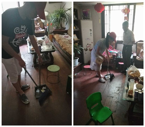 到达社区后,党员志愿者们按照事先安排分成小组,分别入户对社区内的空巢老人和困难家庭开展志愿服务。天气虽然炎热,可丝毫没有影响大家的热情。首先,志愿者们将事先购买好的水果和牛奶送给老人们,让老人们体会到关爱和温暖。紧接着,大家分工合作,有的在屋内打扫卫生、整理物品,有的则坐下来和老人们话起了家常,尽最大努力去解决老人们的一切困难。活动结束时,大家显得恋恋不舍,纷纷表示一定要把志愿精神发扬下去,坚持把志愿服务做下去。