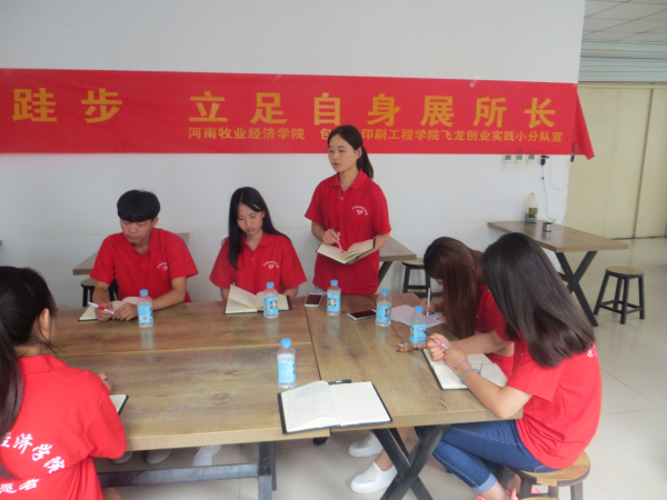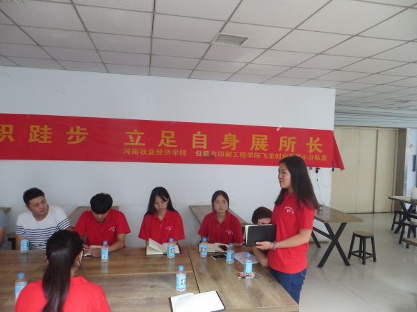 根据公司《关于组织开展2016年暑期社会实践活动的通知》要求,结合“青春建功十三五•携手共筑中国梦”的活动主题和公司员工的专业特点,公司成立了“积跬步,展所长”飞龙创业实践小分队,利用社会实践的契机,在郑州飞龙印刷科技有限公司进行创业培训和实践活动。在小分队的带队老师和队员们的共同努力下,2016 年 7 月 10 日,为期七天的暑期社会实践活动终于划上了圆满的句号。为进一步总结此次社会实践的收获与经验,分享活动中的得与失,公司实践小分队的全体成员在段婧老师和飞龙企业刘静洋总经理的组织下开展了社会实践活动总结交流会。