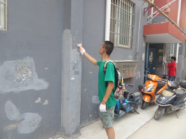在下午的活动中,大家受到了磨李社区党支部的热情接待,磨李社区负责党务活动的罗老师亲自迎接,向员工党员介绍了社区的大致情况并与公司在工作上达成了一致。接下来,同学们按照老师的分工安排,不顾炎热投身到社区服务中去,负责宣传教育的同学们纷纷拿着准备好的宣传页向广大社区群众普及社区文明及交通安全常识,另一组党员同学则深入到社区的各个角落,积极为社区清理垃圾、去除小广告。经过员工党员们将近两个小时的辛勤劳动,社区环境立刻焕然一新。