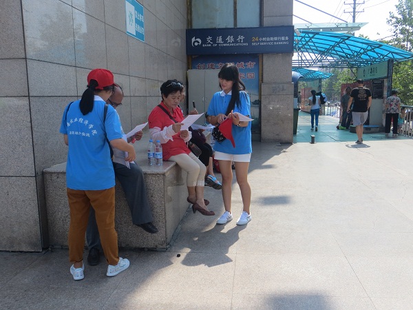 7月10日上午,队员们一行来到了花园路与朝阳路交叉口的融元广场,向市民们发放了民生调研宣传单,就百姓关注的问题,希望能够帮助联系上级管理部门,解决实际问题。同时,队员们也不遗余力的宣传公司的招生情况,向附近的居民们发放了公司的招生宣传简章,并就相关问题给予了准确的答复。