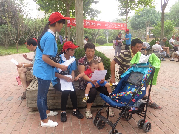 在活动现场,热心的队员们悬挂出绿色环保主题条幅,并通过发放传单、知识问答等形式,广泛发动附近社区居民畅谈绿色话题,增强居民们的环保意识,营造绿色和谐氛围,来共建绿色、低碳社区。队员们向市民解说如何从身边小事做起,为环保贡献自己的一份力量。在活动当中,队员们还遇到公司李延庆老师,他饶有兴趣地和队员们聊起环保,对队员们发起的环保倡议大加赞同。队员们的活动,吸引了不少市民的热情参与,市民们纷纷表示要从自身做起,积极行动,保护环境、爱护家园。