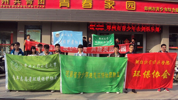 活动于下午2点在共青团市委门前举行,开始前,青年志愿者们接受了组织方的集中学习培训,对环保宣传的重要性有了更加深刻的认识。活动现场,志愿者们积极配合市团委的工作人员,对路人进行地球现状的讲解,向市民免费发放绿色环保倡议书和环保知识宣传手册,呼吁广大市民积极参与环保,以实际行动践行环保事业。活动结束后,联盟负责人组织我系环保协会与其他高校进行了交流,并在共青团郑州市委门前合影留念。