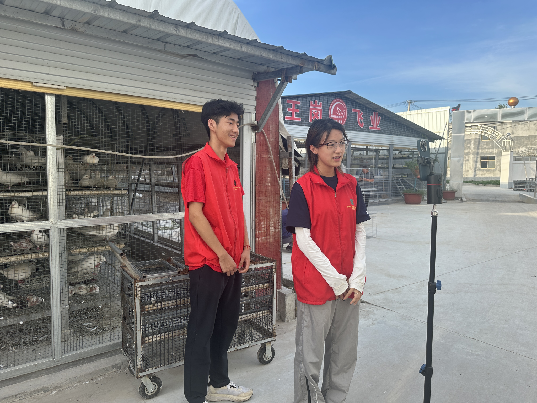 期间,实践队员们在王岗村村委和王岗飞业现场,架起直播设备,进行公益直播,宣传和展示王岗飞业经过精心培育的种鸽和肉鸽。“大家好,欢迎来到我们的直播间,现在介绍的是我们新蔡县王岗飞业主要培育的米玛斯双肌肉鸽,目前我们有棚舍6个,每个约有鸽子2000—4000羽,现有鸽子2.5万羽。。。。。。”镜头前,他们认真讲解王岗飞业培育的鸽子,通过舞蹈、表演的形式与直播间的观众积极进行互动,还对新蔡县当地的历史文化进行宣传和讲解,让观众在了解鸽子品种和知识的同时,还深刻感受到当地乡村文化的韵味。直播期间,收获超2万点赞,充分借助新媒体的力量为乡村发展注入了新动能。