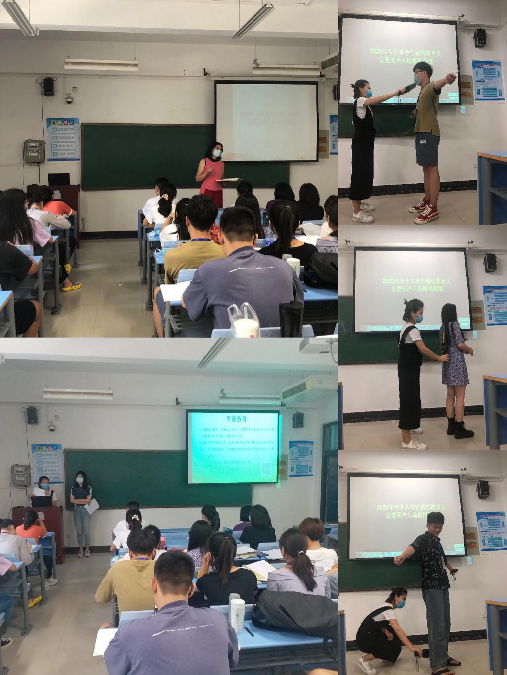 为进一步严肃考风考纪,教育引导专升本考生诚信应考,英国365集团于7月7日上午在B203开展了2020年专升本诚信教育暨无声入场模拟演练活动。公司党委副书记祝聪楠、辅导员张晨景和全体参加专升本考试员工参加。