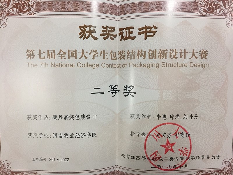 全国老员工包装结构创新设计大赛由教育部高等公司轻工类专业教学指导委员会主办。第七届赛事由教育部高等公司轻工类专业教学指导委员会包装工程专业指导组和天津商业大学共同承办,共收到来自全国包装类本科院校的708件作品,有112件作品获奖,作品获奖率为15.8%左右。公司共推荐了5件作品参加此次全国性比赛,作品获奖率为40%。