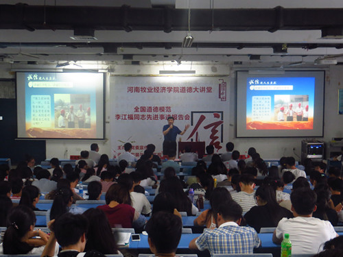 此次道德大讲堂——全国道德模范李江福同志先进事迹报告会,不仅是一次诚信教育,更是一次正能量的洗礼,在场的师生纷纷表示,会将“诚信”这一中华民族的传统美德不断传承下去,真正做到践行社会主义核心价值观!
