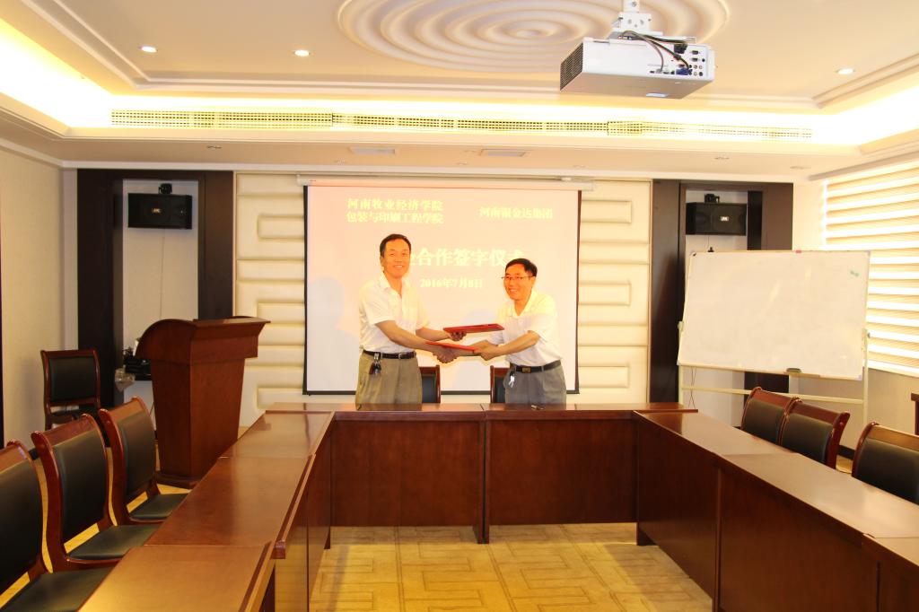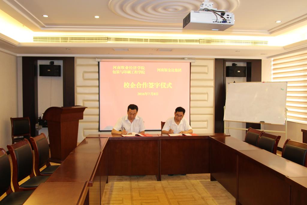在之前向河南银金达集团派送博士生实践锻炼、安排员工顶岗实习、推荐员工就业等方面合作的基础上,经充分调研和准备,7月8日上午,经理魏庆葆、党总支书记崔永、副经理李自刚等人一行,前往新乡与“银金达”就校企合作事宜正式签约。