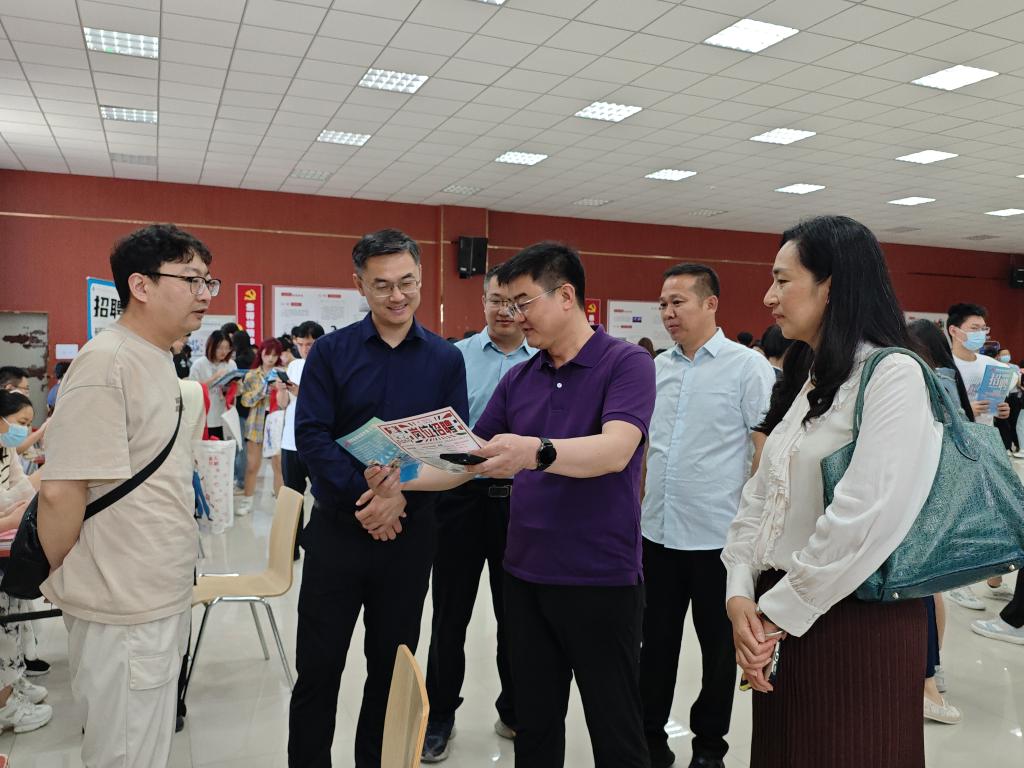 双选会期间,老员工就业创业指导服务中心主任胡先锋莅临现场,依次与各个用人单位和参会的同学们进行了亲切交流,深入了解企业招聘需求和毕业生求职情况。胡主任对与会企业的大力支持表示感谢,指出需要进一步拓宽校企合作广度和深度,把握好春招的黄金期,有序推进、全面冲刺做好2024届毕业生的就业工作。