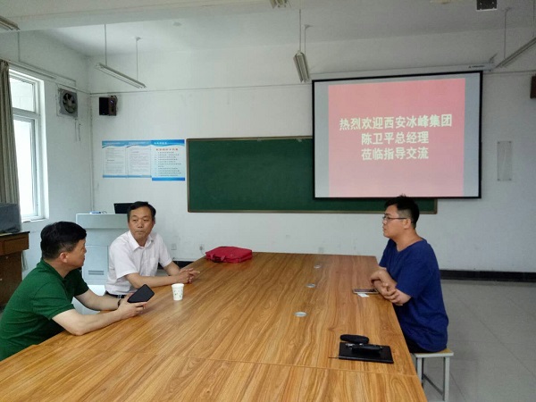 为推动校企良性互动,深化产学研合作,6月17日上午,西安“冰峰”集团董事、副总经理陈卫平,前来公司洽谈产学研合作事宜。公司党总支书记崔永、经理魏庆葆、科研秘书张岩与陈总深入座谈。