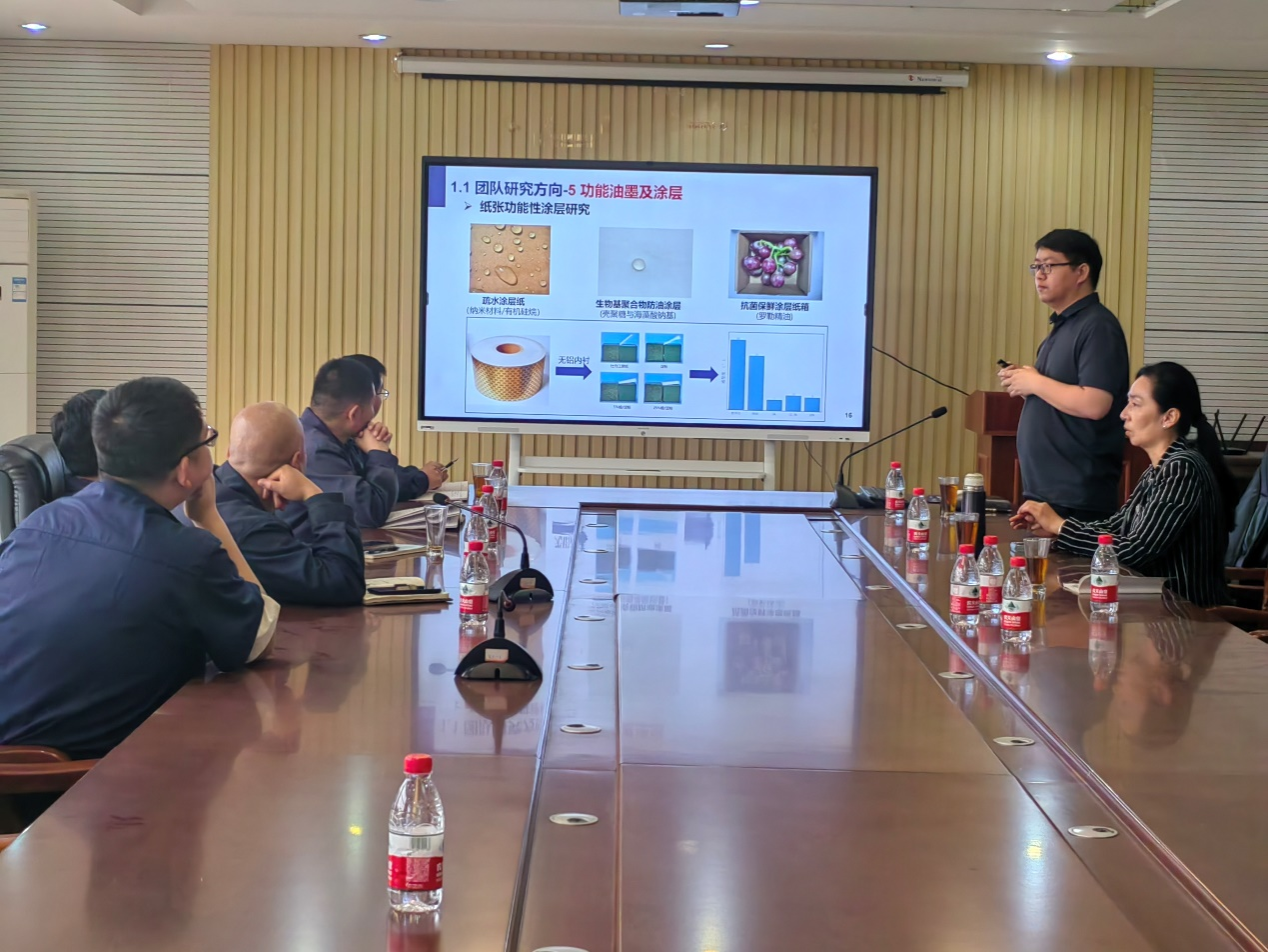 随后,王建闯博士详细介绍了公司的科研设施、团队队伍、科研成果、校企合作以及承担的国家级与省部级项目等情况;分享了功能复合包装材料团队在生物质可降解材料、食品活性包装、聚烯烃功能性包装膜,智能响应材料等方面取得一系列研究成果。